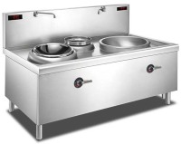 商用電磁灶種類多,有雙炒雙(單)尾灶,雙頭大鍋灶,組合炒爐,單頭單尾灶,單頭大鍋灶,臺式小炒爐,電磁蒸飯車,電磁
